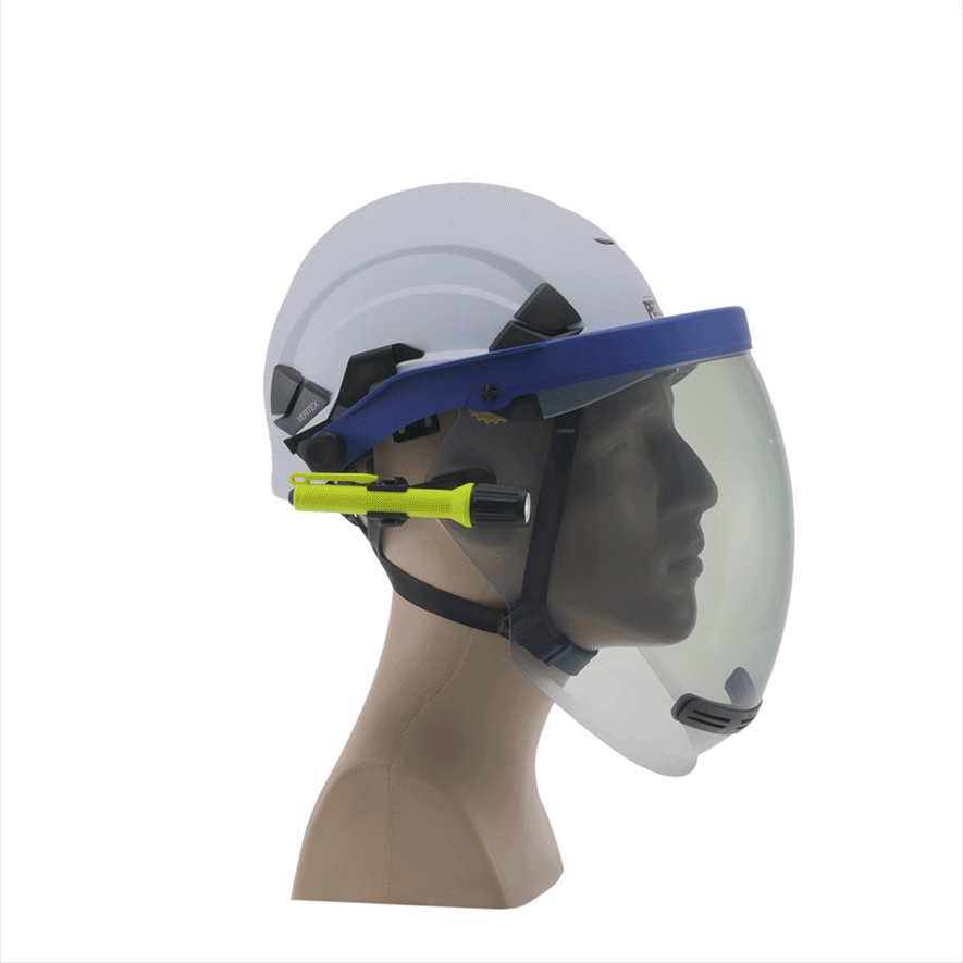 AmpShield® arc flash protection face shield with HT™ nanoparticle lens. ATPV 12 cal/cm². Toric shape allows for wide peripheral view, excellent downward vision, and reduced internal glare. Integrated transparent chin protector gives protection from hazards from below, such as debris and splash. Permanent antifog & anti-abrasion coatings. Patented ArcVent® system enhances ventilation. Weight-compensating slotted cap bracket reduces the weight imbalance felt while above the head in the stowed position. LeverLock® attachment system for easy shield replacement. Press-to-release slotted adapters for easy bracket removal. Compatible with Paulson ALM™ flashlight system (sold separately).