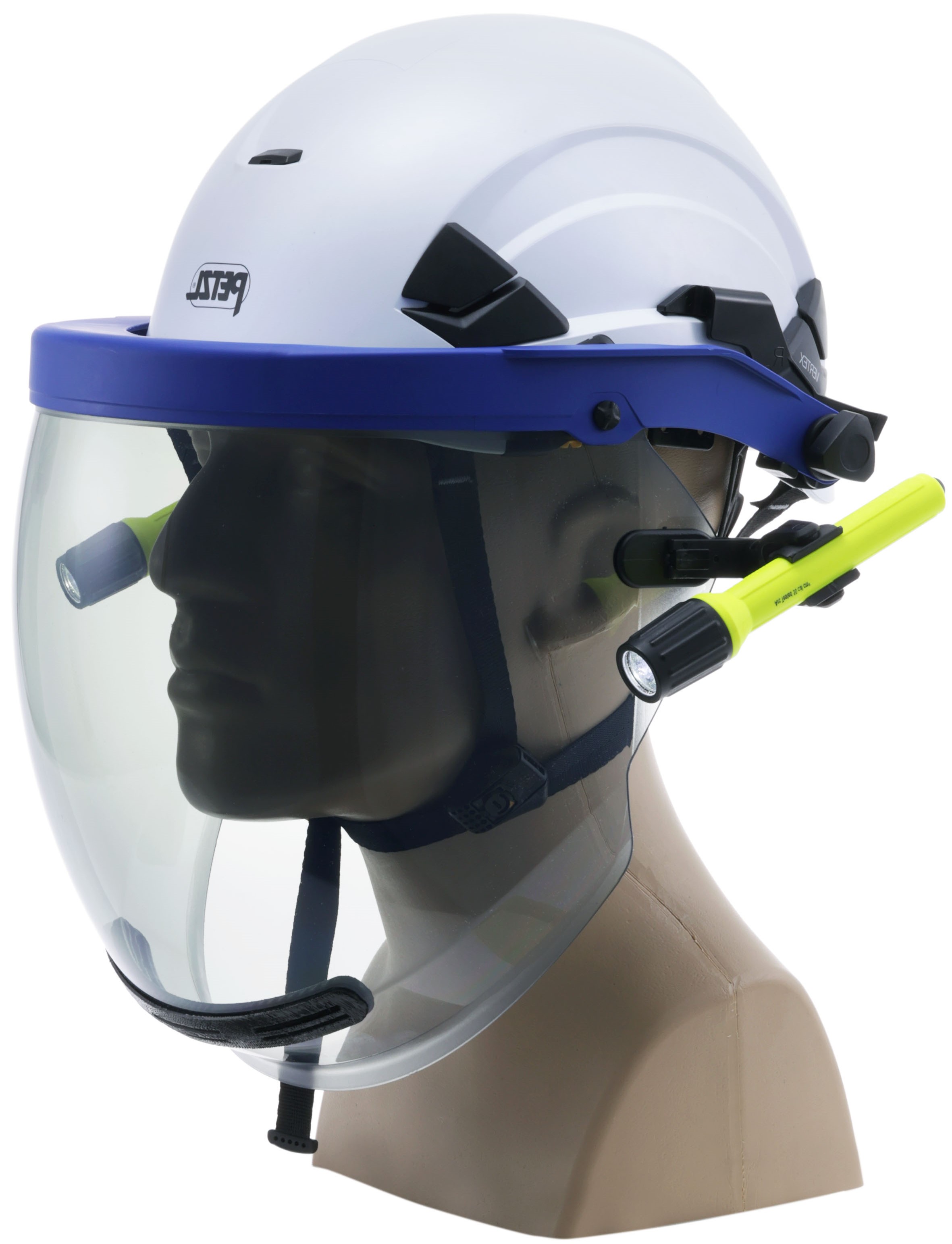AmpShield® arc flash protection face shield with HT™ nanoparticle lens. ATPV 20 cal/cm². Toric shape allows for wide peripheral view, excellent downward vision, and reduced internal glare. Integrated transparent chin protector gives protection from hazards from below, such as debris and splash. Permanent antifog & anti-abrasion coatings. Patented ArcVent® system enhances ventilation. Weight-compensating bracket with Petzl® safety helmet compatibility reduces the weight imbalance felt while above the head in the stowed position. LeverLock® attachment system for easy shield replacement. Press-to-release slotted adapters for easy bracket removal. Compatible with Paulson ALM™ flashlight system (sold separately).