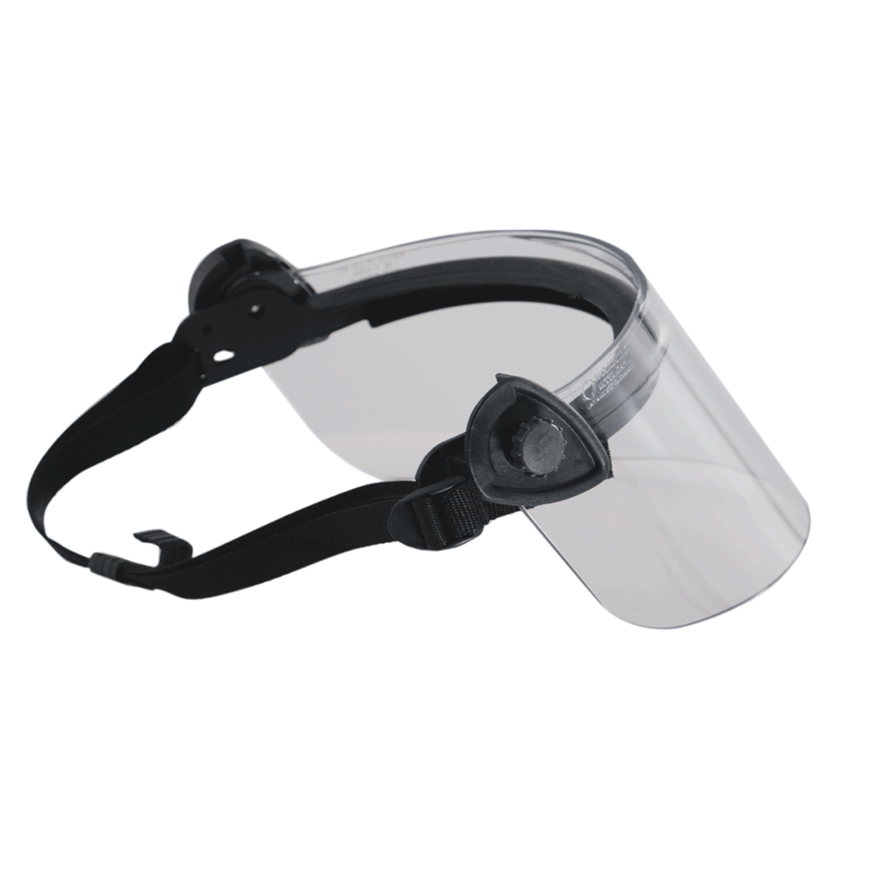 Shield: Polycarbonate Attachment System: Plastic Alloy/ Nylon Fabric |