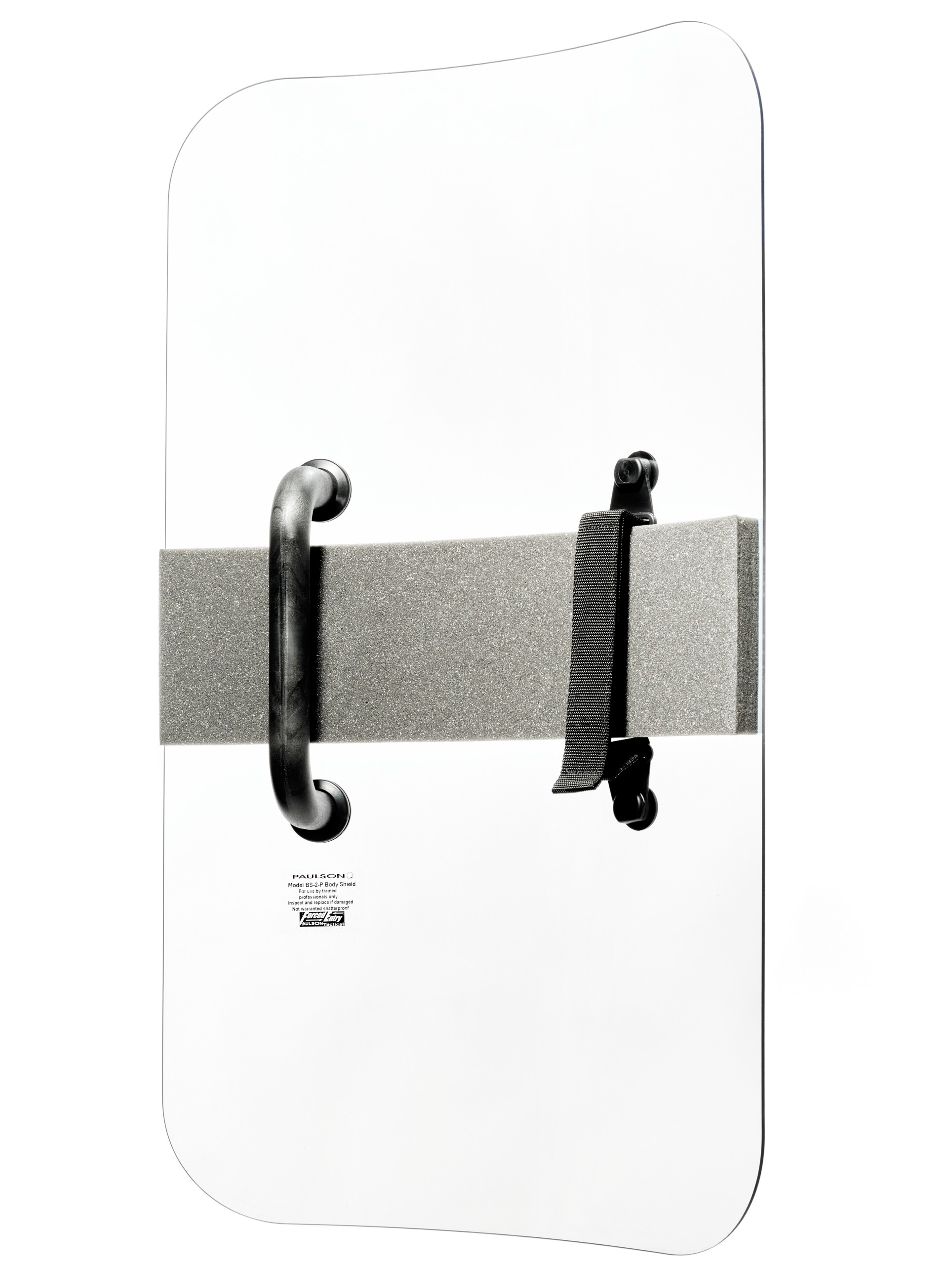 Handheld riot body shield with a formed radius & ergonomic features. Dielectric handle and break away strap prevent electrical pass through. Can be reversed for left or right hand use. Superior optical quality. Standard decals available include POLICE, SHERIFF & CORRECTIONS. Custom decals & multiple languages available. Decal must be specified at time of purchase.