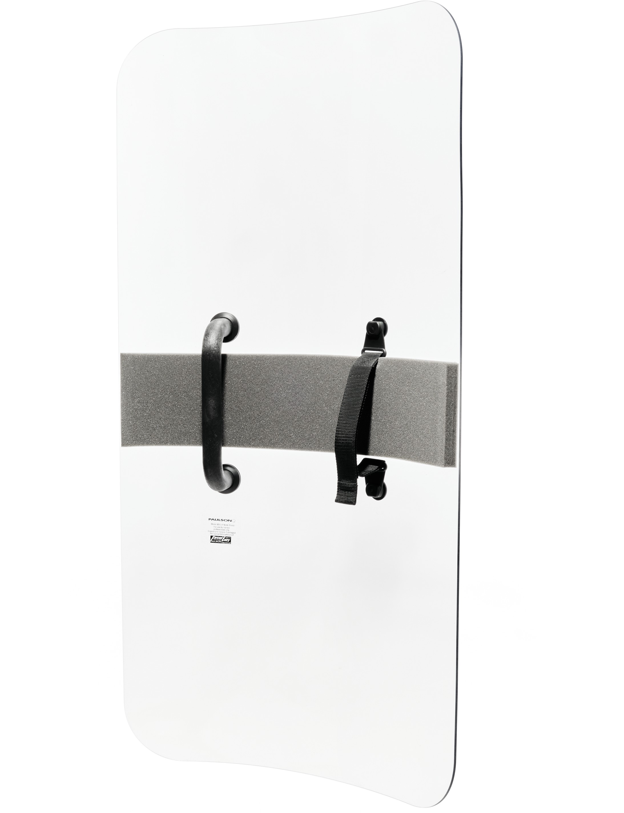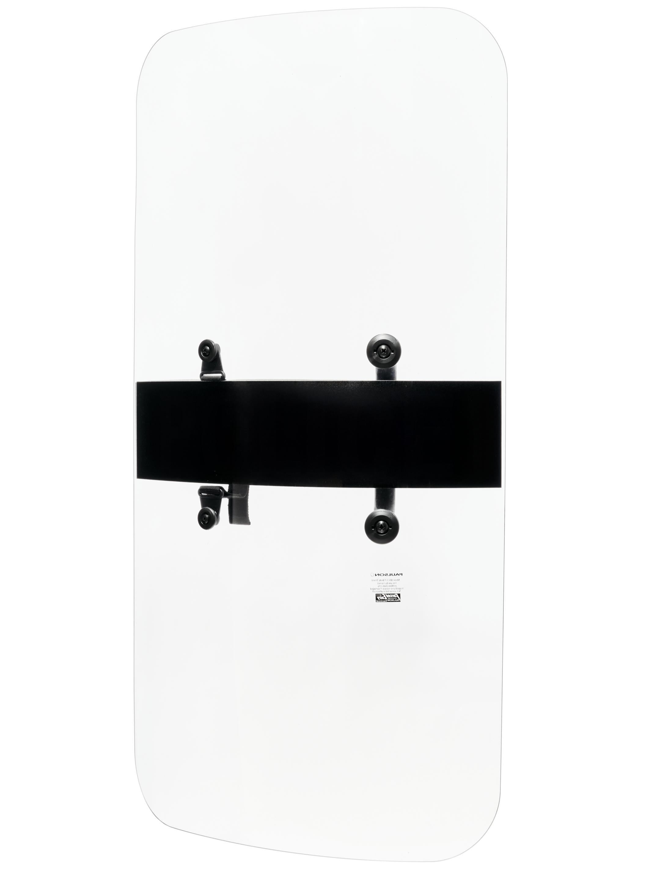 Handheld riot body shield with a formed radius & ergonomic features. Dielectric handle and break away strap prevent electrical pass through. Can be reversed for left or right hand use. Superior optical quality. Standard decals available include POLICE, SHERIFF & CORRECTIONS. Custom decals & multiple languages available. Decal must be specified at time of purchase.