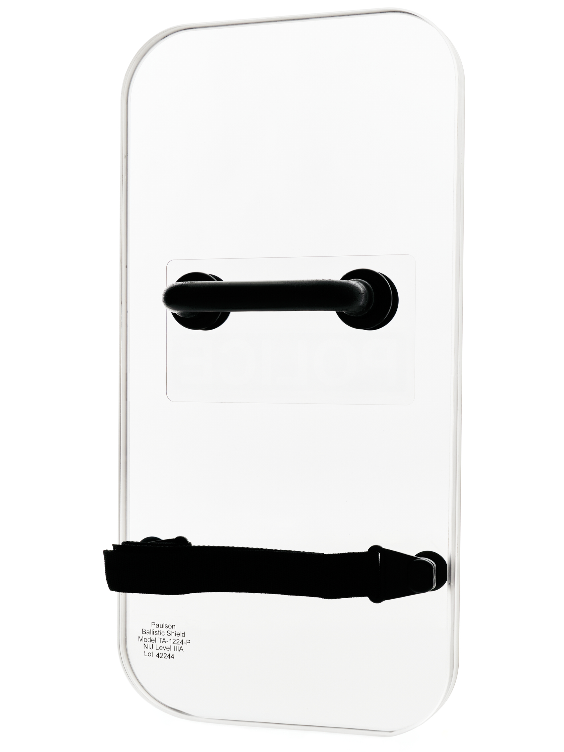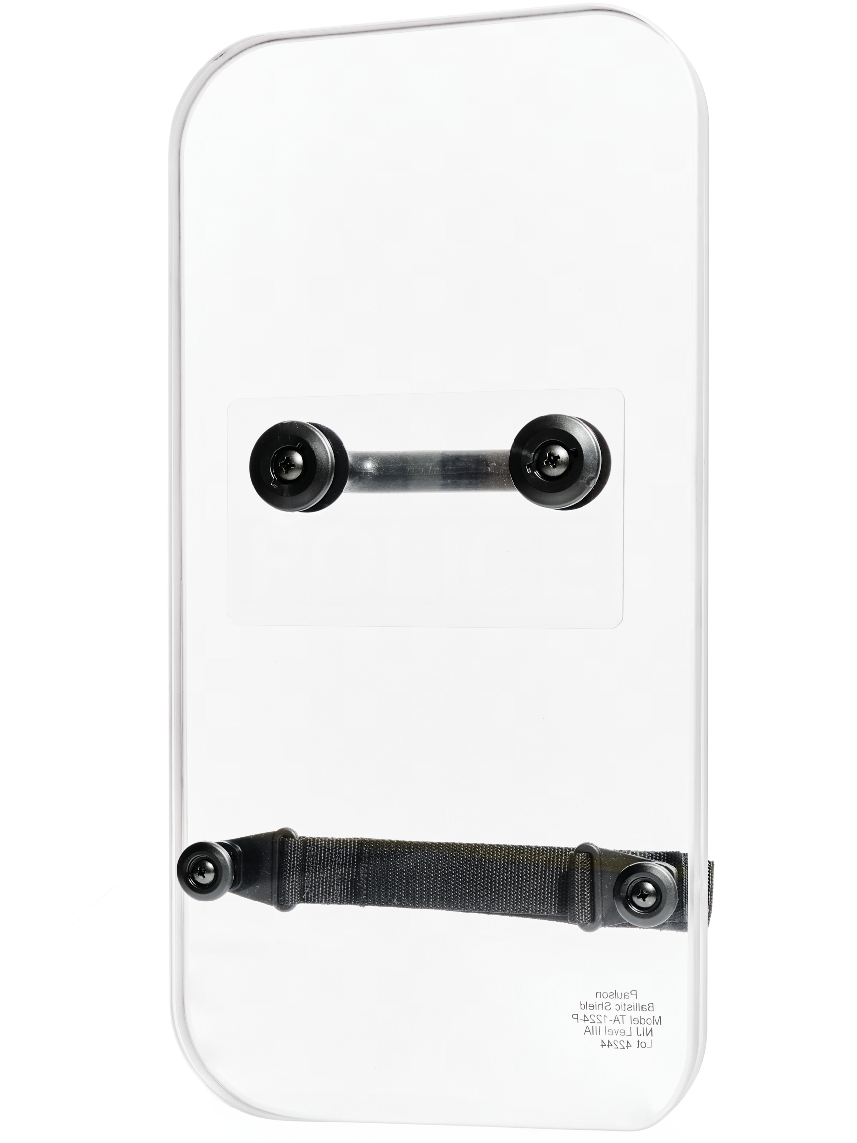 Transparent Level IIIA ballistic handheld shield. Designed to be operated with one arm to allow the use of a firearm with the other hand. The transparent polycarbonate material maximizes visibility. Designed to be used for right or left hand use. The nylon fabric breakaway strap allows the user to free his/her arm if necessary. Standard decals available include POLICE, SHERIFF & CORRECTIONS. Custom decals & multiple languages available. Decal must be specified at time of purchase.